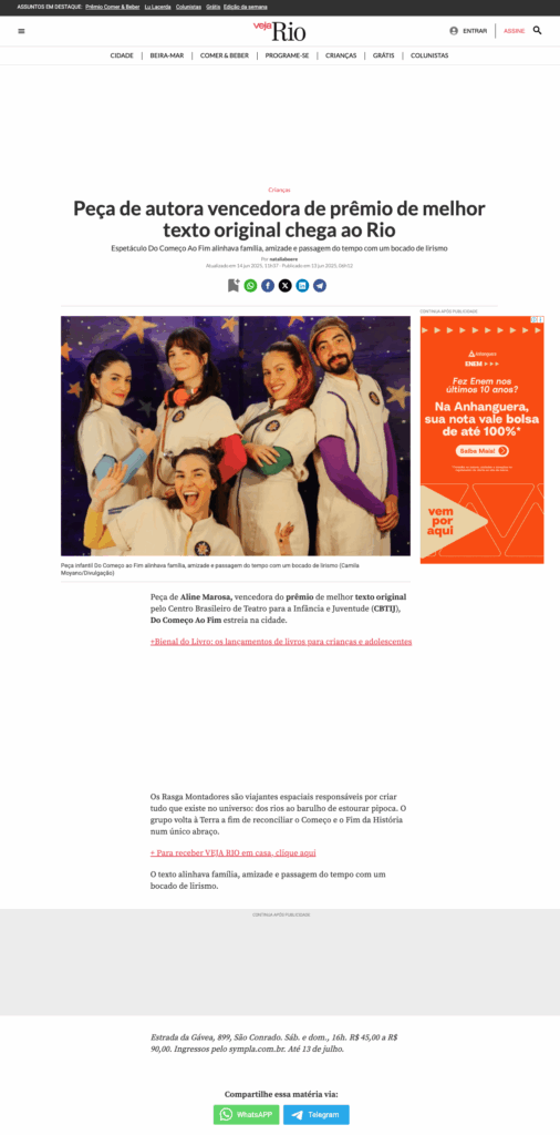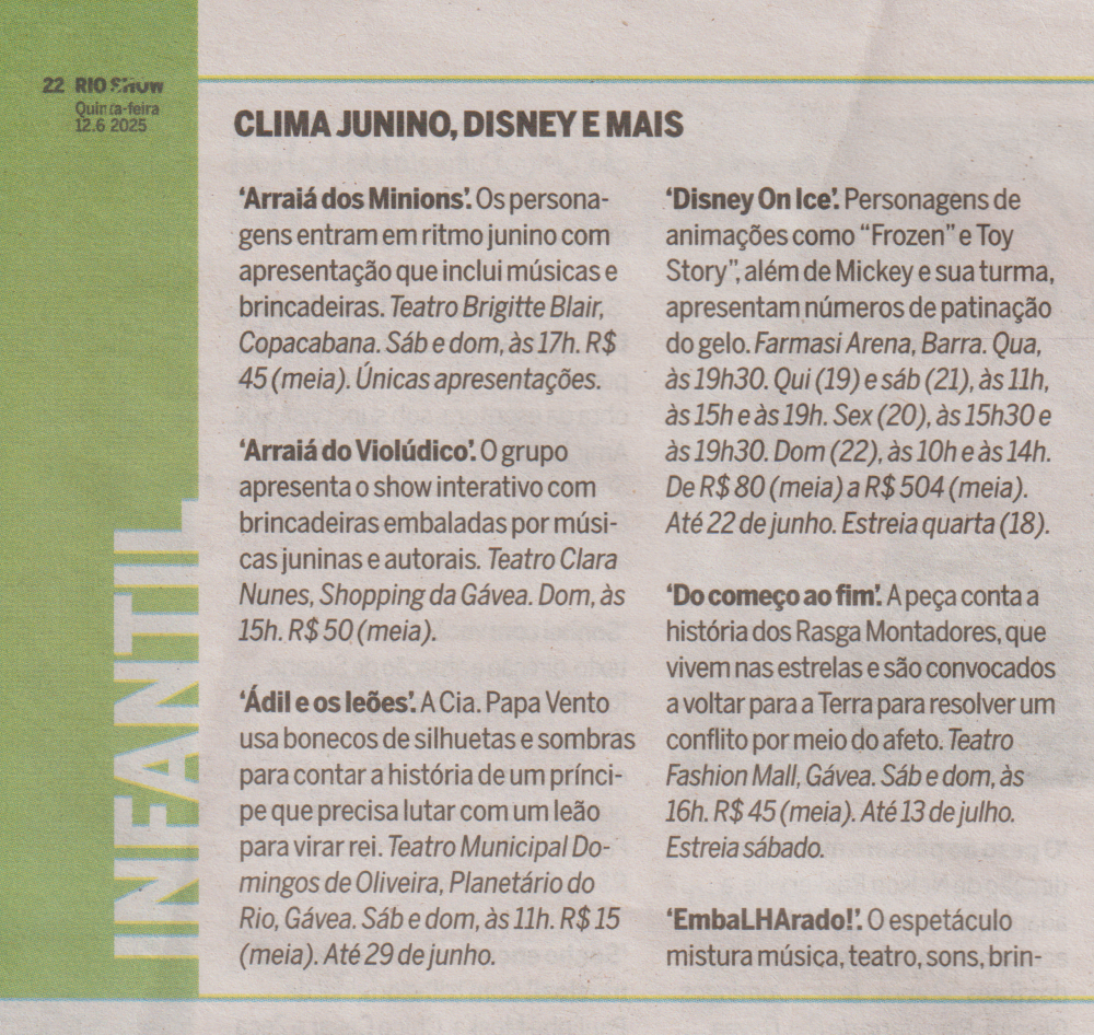 Elenco: Guida Vianna, Ricardo Kosovski, Raynna e Julia Tupinambá